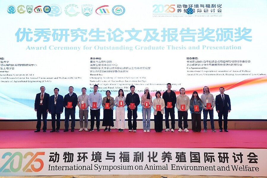 Xuefei Wu, ebenfalls Doktorand am ATB, wurde beim diesjährigen International Symposium on Animal Enviroment and Welfare (ISAEW 2025) in Chongqing, China für seine herausragende Forschungsarbeit mit dem Outstanding Graduate Student Paper and Presentation Award geehrt.