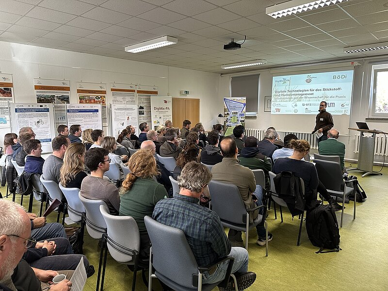 Die Veranstaltung unter dem Titel „Digitale Technologien für das Stickstoff- und Humusmanagement“ zog über 50 Teilnehmende aus der landwirtschaftlichen Praxis, der Beratung, aus Behörden, Ministerien sowie aus Wissenschaft und Lehre an. Ziel war es, eine Brücke zwischen aktueller Forschung und praktischer Anwendung zu schlagen und den direkten Dialog zu fördern.